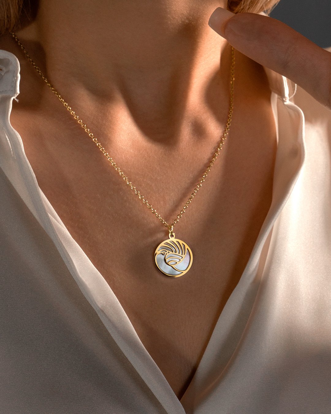 Dank der Reflexionen des Perlmutts, die sich durch die Sonneneinstrahlung ständig verändern, ist dieses Schmuckstück die ideale Ergänzung zu jedem Outfit.