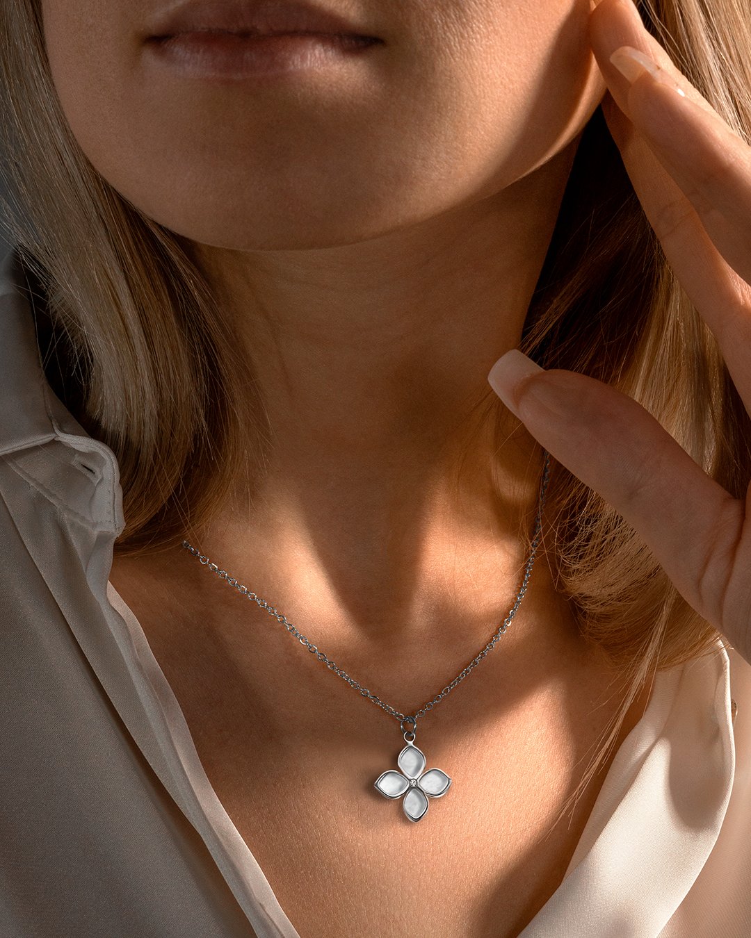 Das Perlmutt des Medaillons wechselt seine Farbe mit dem Sonnenlicht, so dass es zu jedem Look passt.