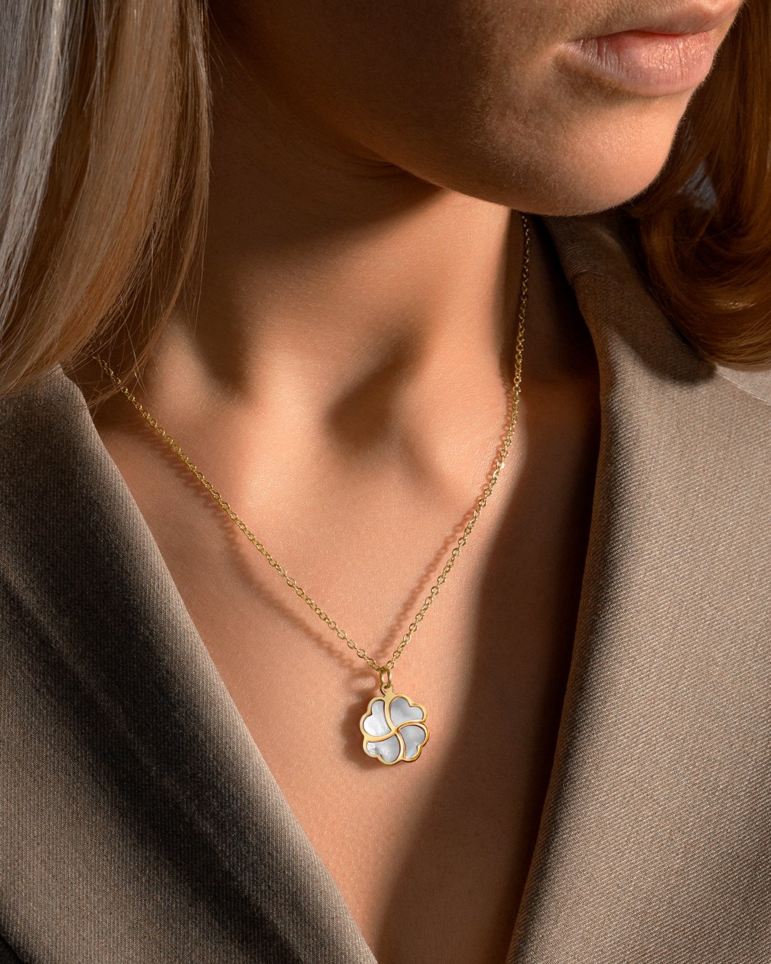 Das kleeblattförmige Motiv ist der symbolträchtigste Glücksbringer, den es gibt. Jedes Blatt hat seine eigene Bedeutung: Hoffnung, Glaube, Liebe und Glück.