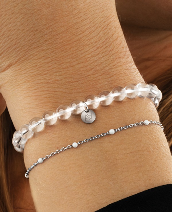 Dieses Armband aus Natursteinen der Kollektion Die Originellen besteht ausschließlich aus Bergkristall, bei wir jeden Naturstein sorgfältig ausgewählt haben.