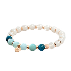 Der Rest des Armbands besteht vollständig aus Mondstein, einem sehr geschätzten Edelstein für seinen milchigen Glanz und sein wunderschönes perlmuttartiges oder bläuliches Lichtspiel namens Adulareszenz,