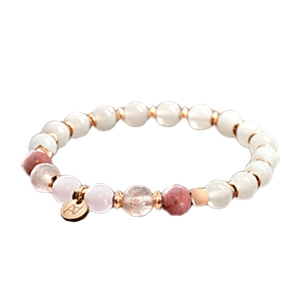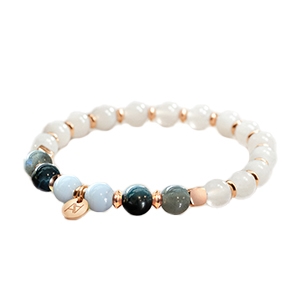 Der Rest des Armbands besteht vollständig aus Mondstein, einem geschätzten Edelstein für seinen Perlglanz und sein sanftes, manchmal bläuliches Lichtspiel.