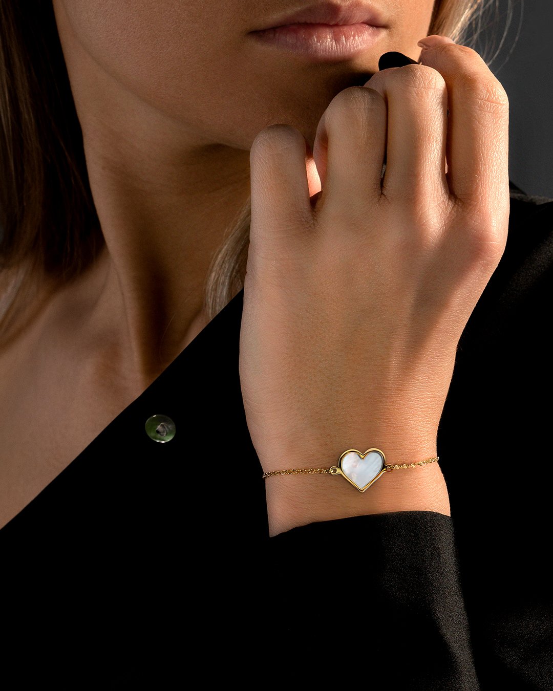 Das Armband Cuoretti Doro besteht aus einem Perlmuttstück, das von einer vergoldeten Edelstahlkette begleitet wird.