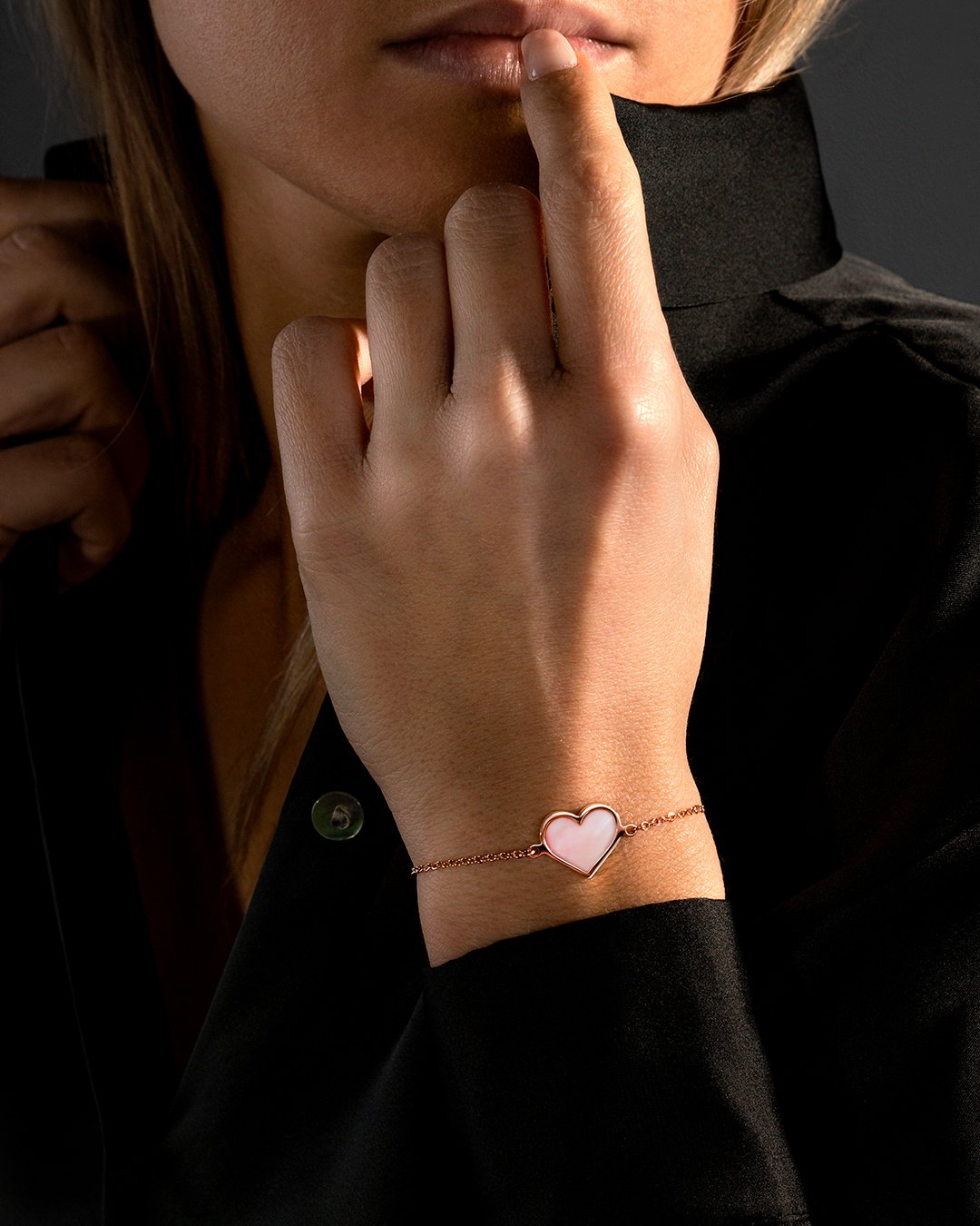 Das Armband Cuoretti Rosa besteht aus einem Perlmuttstück, das von einer rosafarbenen Edelstahlkette begleitet wird.