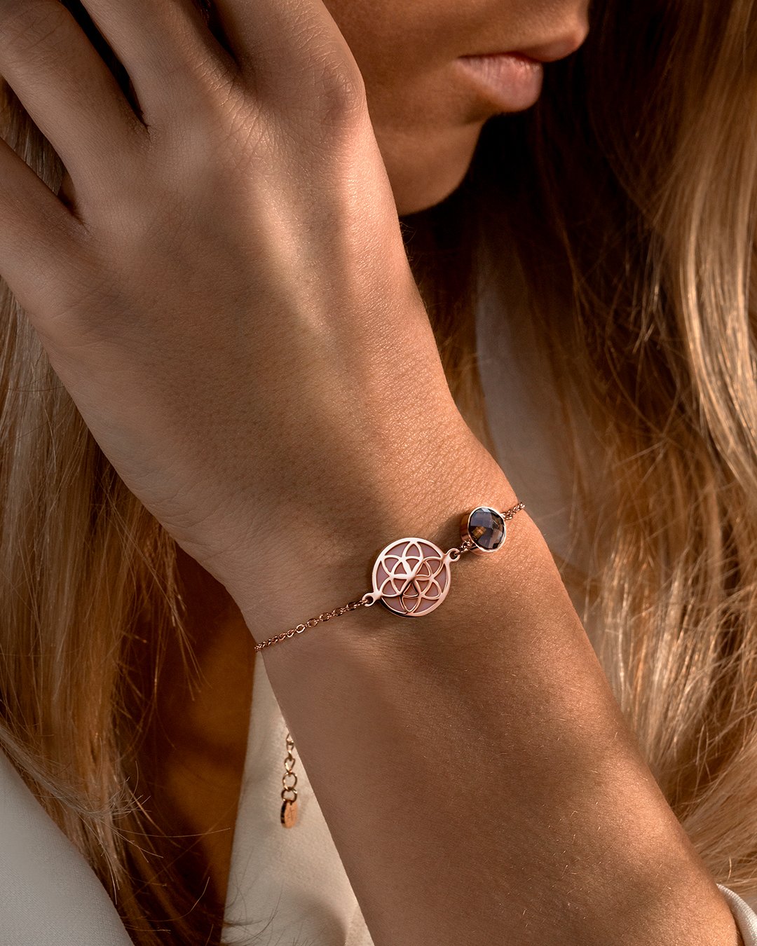 Das Medaillon, das eine Blume des Lebens darstellt, symbolisiert den Prozess der ständigen Erneuerung des Lebens. Sie ist eine der heiligsten geometrischen Formen der Welt.