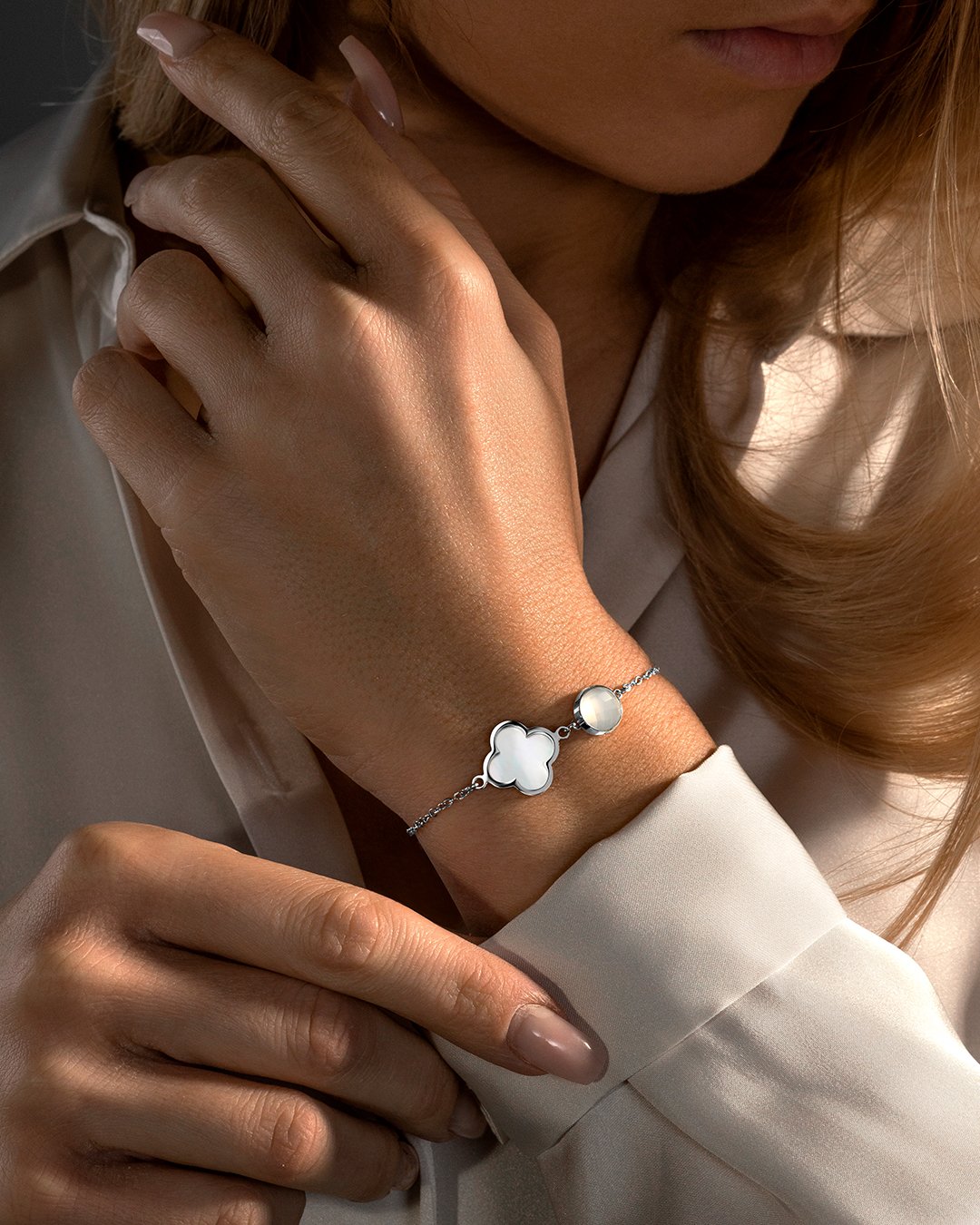 Der Stein hat eine sanfte weiße Farbe und passt perfekt zu jedem Look. Mit einer Länge von 16 cm und einer verstellbaren Kette, die bis zu 4 cm verlängert werden kann, passt er sich mit einer Gesamtlänge von 20 cm jedem Handgelenk an.