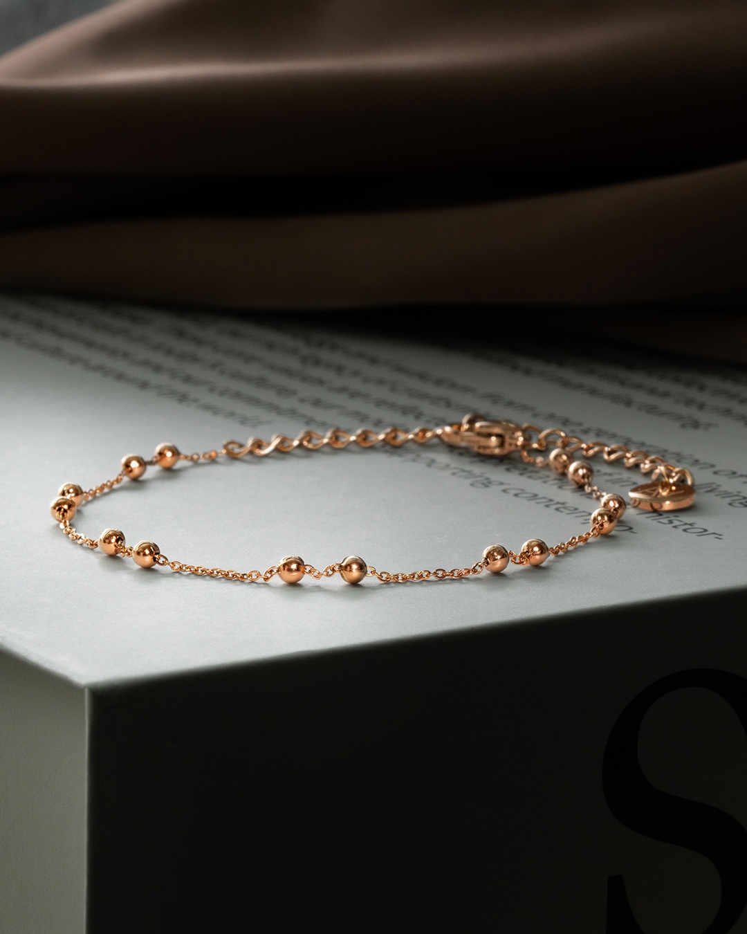 Das Armband Sofia Rosa ist mit einer eleganten Kette versehen, an der kleine Perlen aus rosévergoldeten Edelstahl befestigt sind. Das Armband hat eine Gesamtlänge von 21 cm und besteht aus einem Hauptteil von 14,5 cm sowie einem verstellbaren Teil von 6,5 cm, der sich an jedes Handgelenk anpassen lässt. Dieses Armband ist ein unverzichtbares Accessoire, das perfekt zu den anderen Armbändern der Marke Anna Velazia passt.