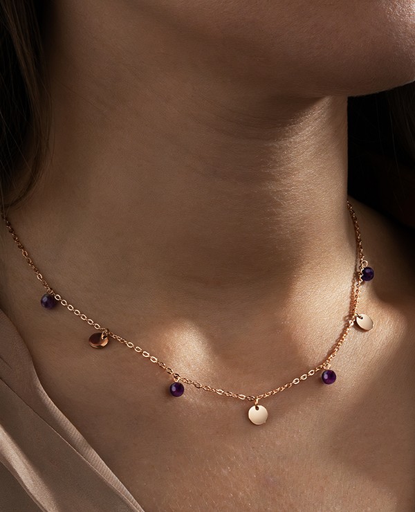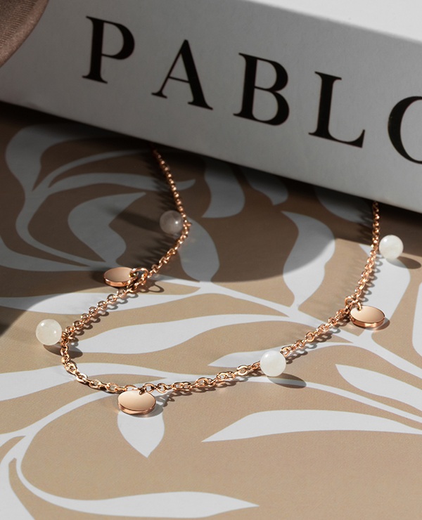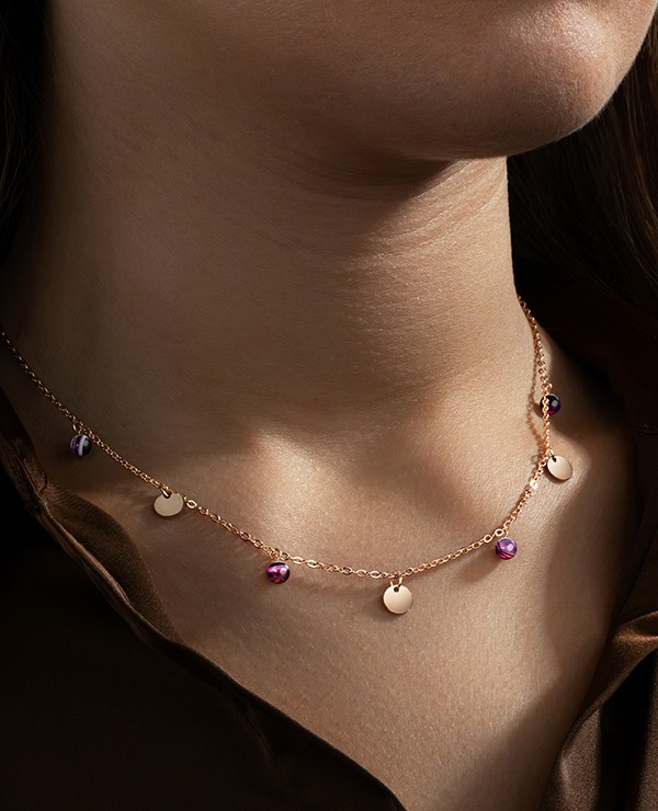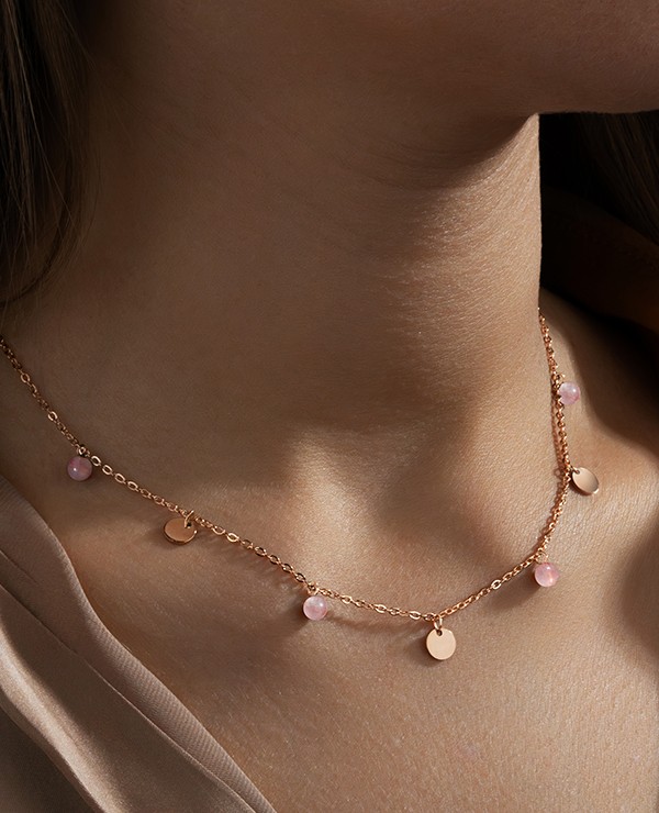 Die Halskette Comissinotto ist aus rosévergoldeten, Edelstahl gefertigt und mit vier wunderschönen Rosenquarzen verziert, die sorgfältig zwischen den von Anna Velazia signierten Anhängern angeordnet sind. Mit einer Länge von 48 cm und einem verstellbaren Teil von 6,5 cm passt sich dieses Halsband leicht Ihrem Halsumfang an. In der Steinheilkunde ist der Rosenquarz das Symbol der Liebe. Dieser Stein ist bekannt für seine Tugenden im Zusammenhang mit Liebe, Mitgefühl und Harmonie in Beziehungen. Unsere Schmuckstücke bestehen aus Natursteinen und sind daher alle unterschiedlich. Daher können je nach Modell Unterschiede in Größe und Farbnuancen auftreten. Diese Unterschiede machen jeden Stein einzigartig.