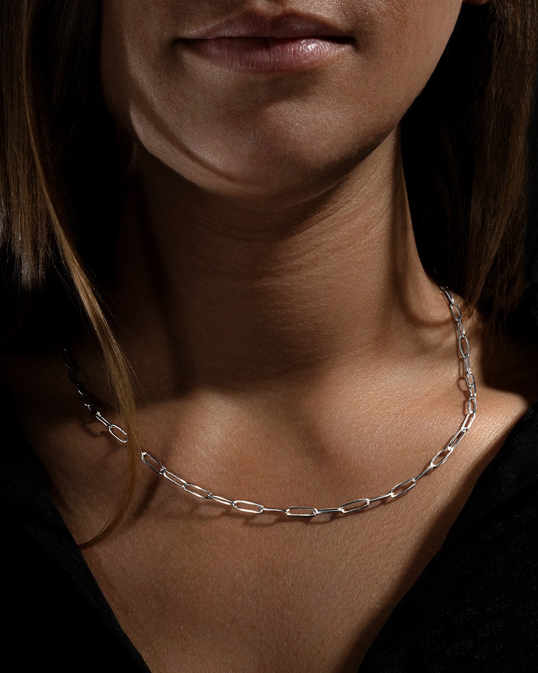 Der Anhänger Giuliana besteht aus einer Kette mit zierlichen Gliedern aus silberfarbenem Edelstahl. Dank ihres raffinierten Designs und ihrer Länge von 50 cm kann sie an jedem Glied verstellt werden, so dass sie sich jeder Körperform perfekt anpasst. Die Halskette wird zu einem unverzichtbaren Accessoire, das perfekt zu ihrem Armband und anderen Schmuckstücken der Marke Anna Velazia passt.