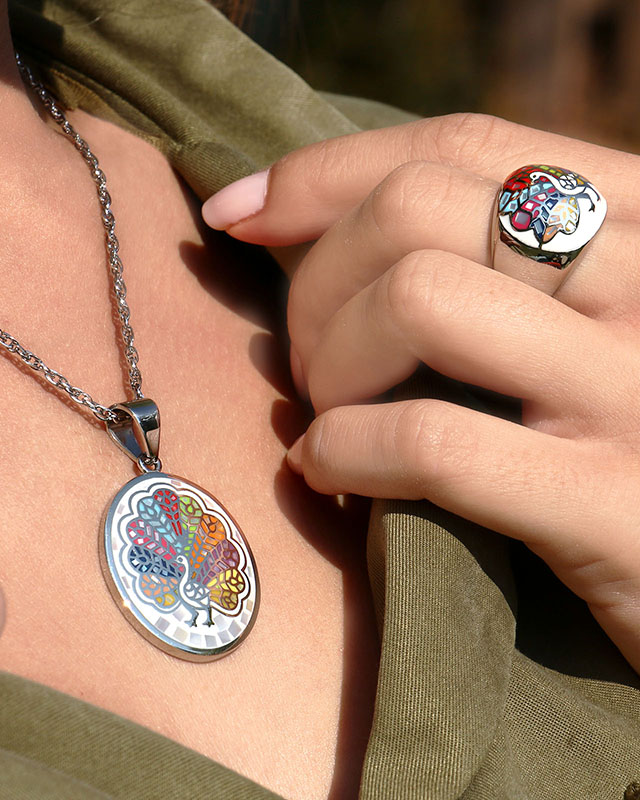 Entdecken Sie die perfekte Mischung aus Emaille und Perlmutt. Eine Kollektion aus einzigartigen Schmuckstücken, deren Zusammensetzung sich an der Schönheit Italiens inspiriert hat.
