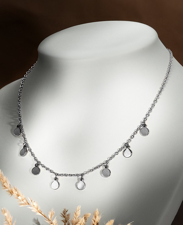 Der Anhänger Sofiana zeichnet sich durch eine elegante Kette aus, die mit kleinen silberfarbenen Edelstahlperlen verziert ist. Die Halskette hat eine Gesamtlänge von 50 cm, mit einem Hauptteil von 43 cm und einem verstellbaren Teil von 7 cm, so dass sie sich jeder Körperform anpasst. Diese Halskette wird zu einem unverzichtbaren Accessoire, das perfekt zu ihrem Armband und anderen Schmuckstücken der Marke Anna Velazia passt.