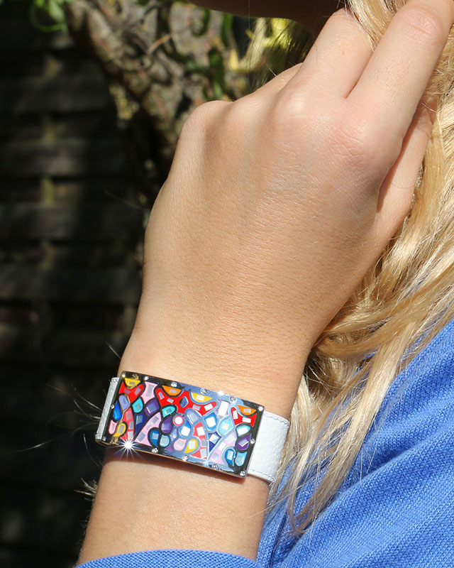 Mit einer Breite von 2 cm passt sich das Armband mit seinem selbstschließenden System sehr einfach an jedes Handgelenk an.