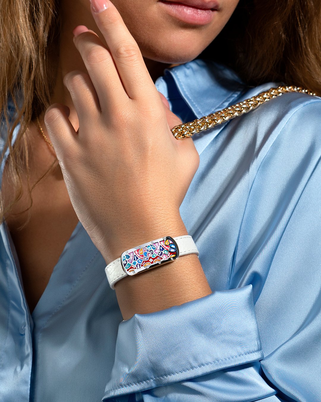 Das weiße Armband wird Ihr Handgelenk unterstreichen.