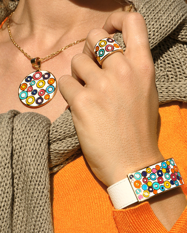 Entdecken Sie die perfekte Mischung aus Emaille und Perlmutt. Eine Kollektion aus einzigartigen Schmuckstücken, deren Zusammensetzung sich an der Schönheit Italiens inspiriert hat.