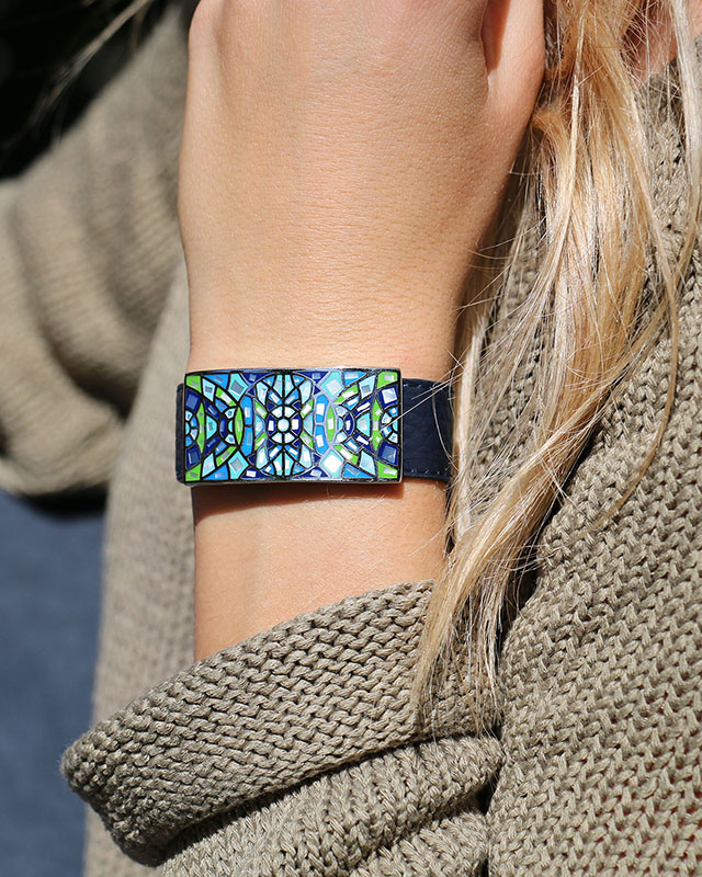 Mit einer Breite von 2 cm passt sich das Armband mit seinem selbstschließenden System sehr einfach an jedes Handgelenk an.