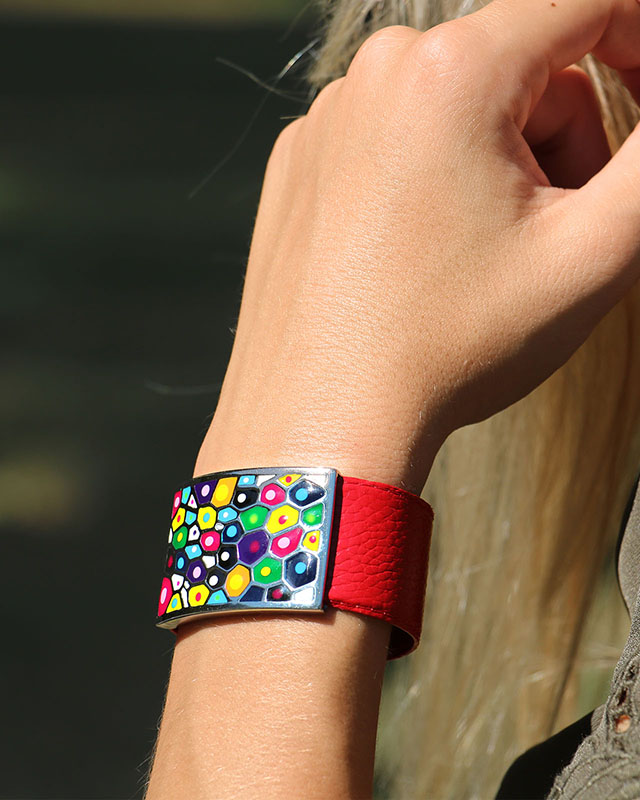 Mit einer Breite von 3 cm passt sich das Armband mit seinem selbstschließenden System sehr einfach an jedes Handgelenk an.
