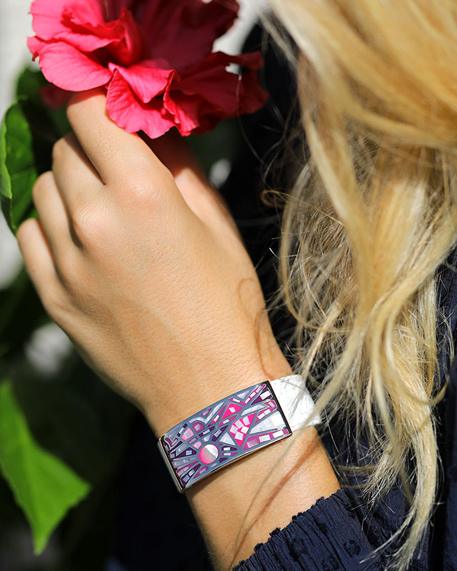 Mit einer Breite von 2 cm passt sich das Armband mit seinem selbstschließenden System sehr einfach an jedes Handgelenk an.
