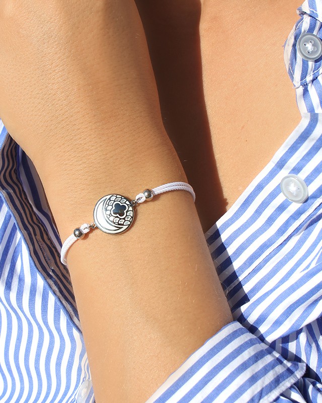 Das strahlend-weiße Baumwoll-Armband wird Ihr Handgelenk betont charmant Ihr Handgelenk.