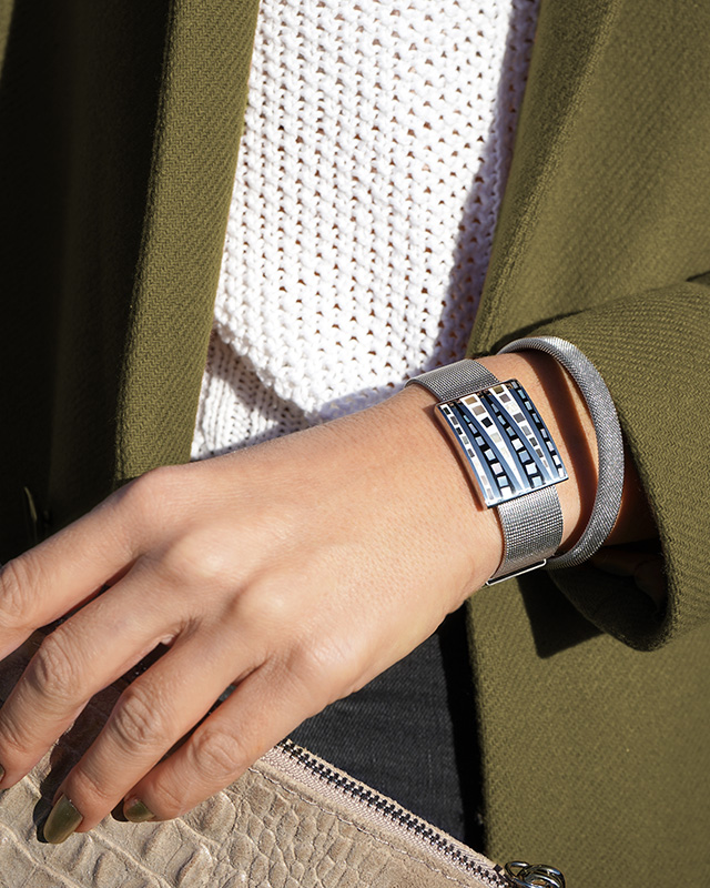 Mit einer Breite von 18 mm passt sich das Armband mit seinem Uhrenverschluss-System leicht an jedes Handgelenk an.