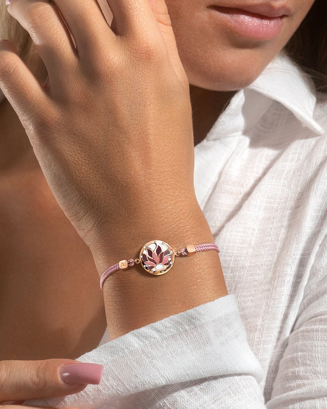 - Material des Armbandes Baumwolle + Kette