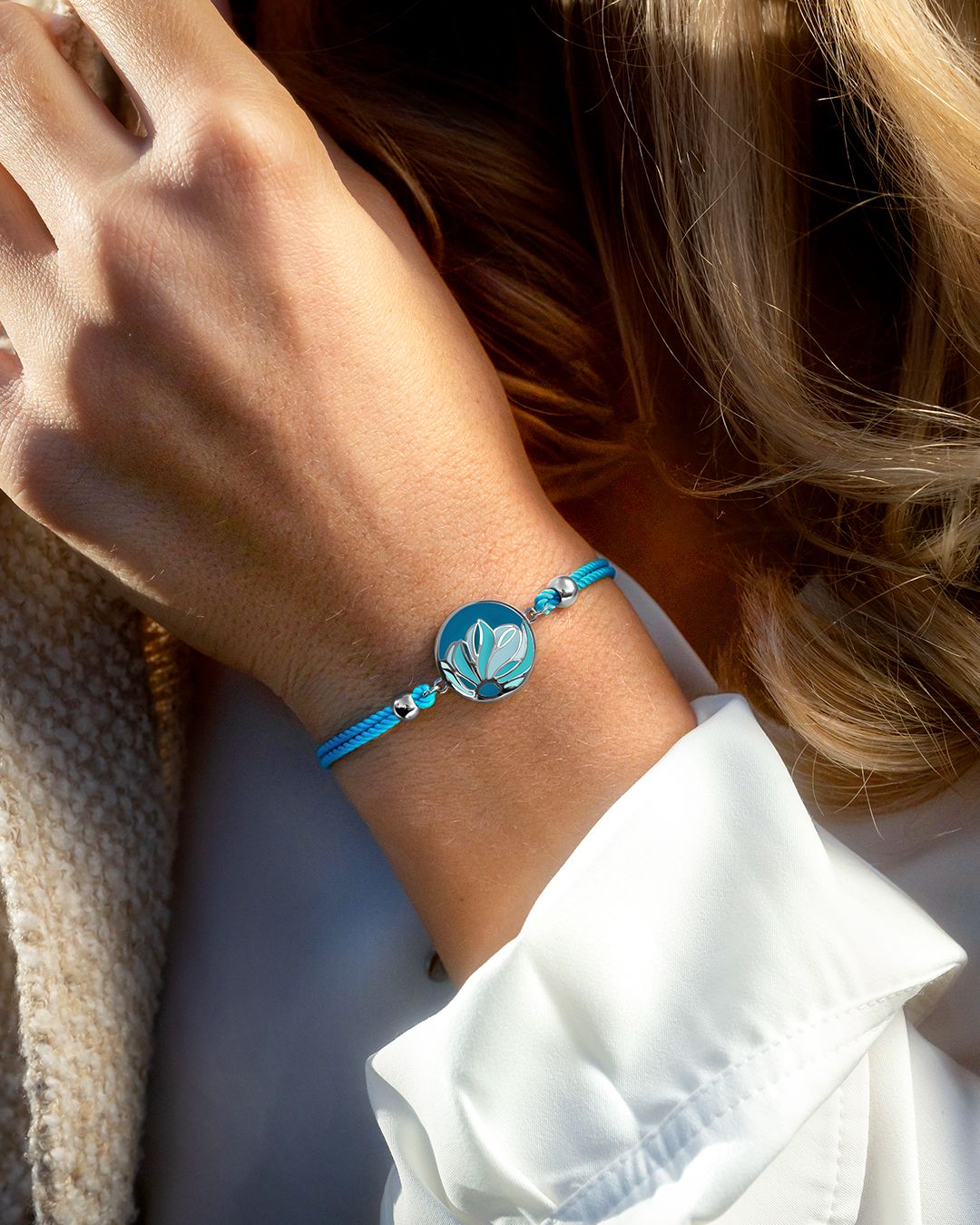 Die türkise Farbe seines Baumwoll Armbands verleiht Ihnen einen Touch Farbe, die sich perfekt an Ihre Outfits anpasst und Ihr Handgelenk charmant betont.