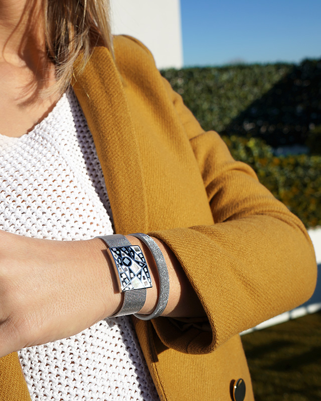 Mit einer Breite von 18 mm passt sich das Armband mit seinem Uhrenverschluss-System leicht an jedes Handgelenk an.