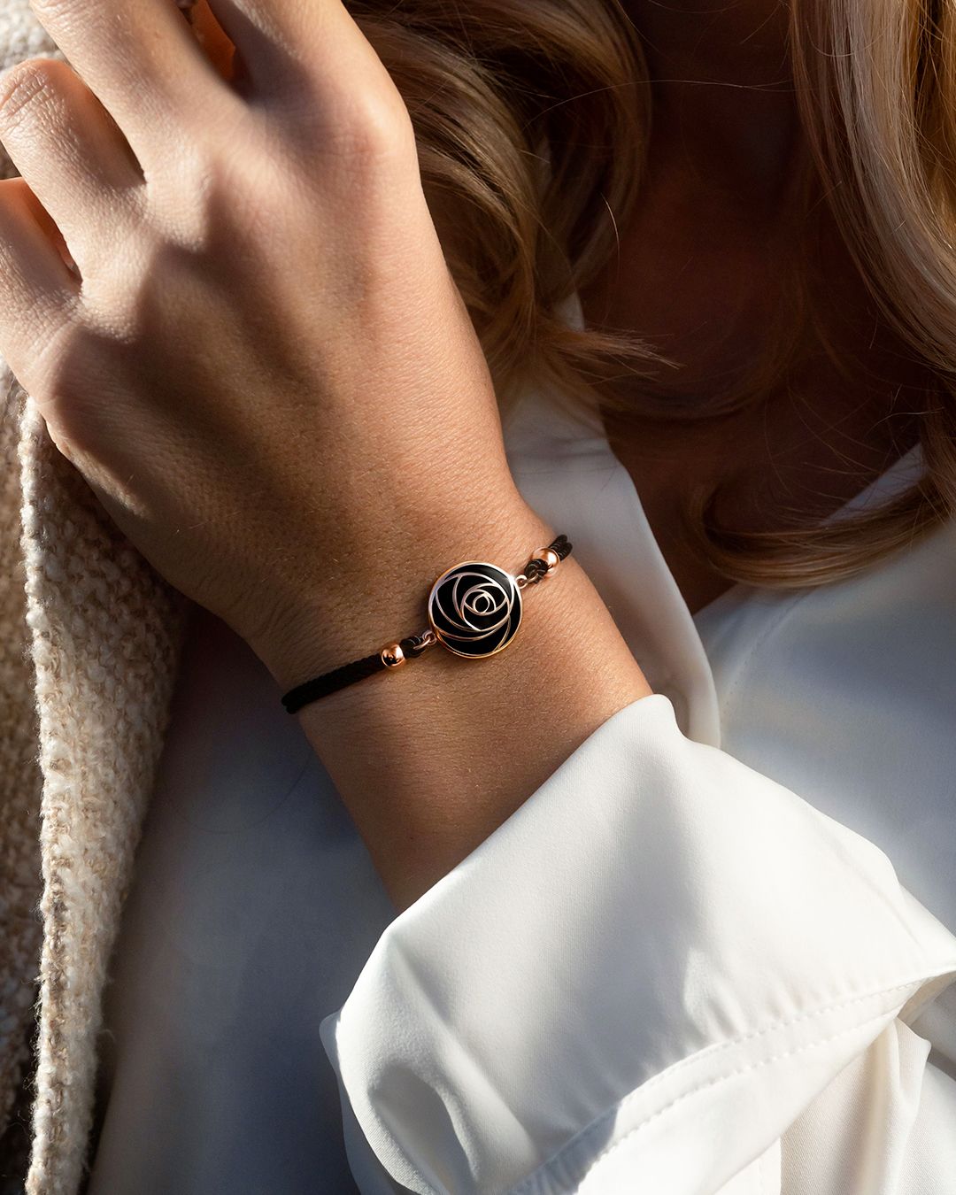 Die intensive schwarze Farbe seines Baumwoll Armbands hebt die Besonderheiten des Medaillons hervor und wird alle Ihre Outfits betonen.