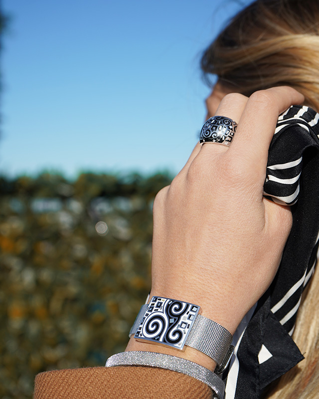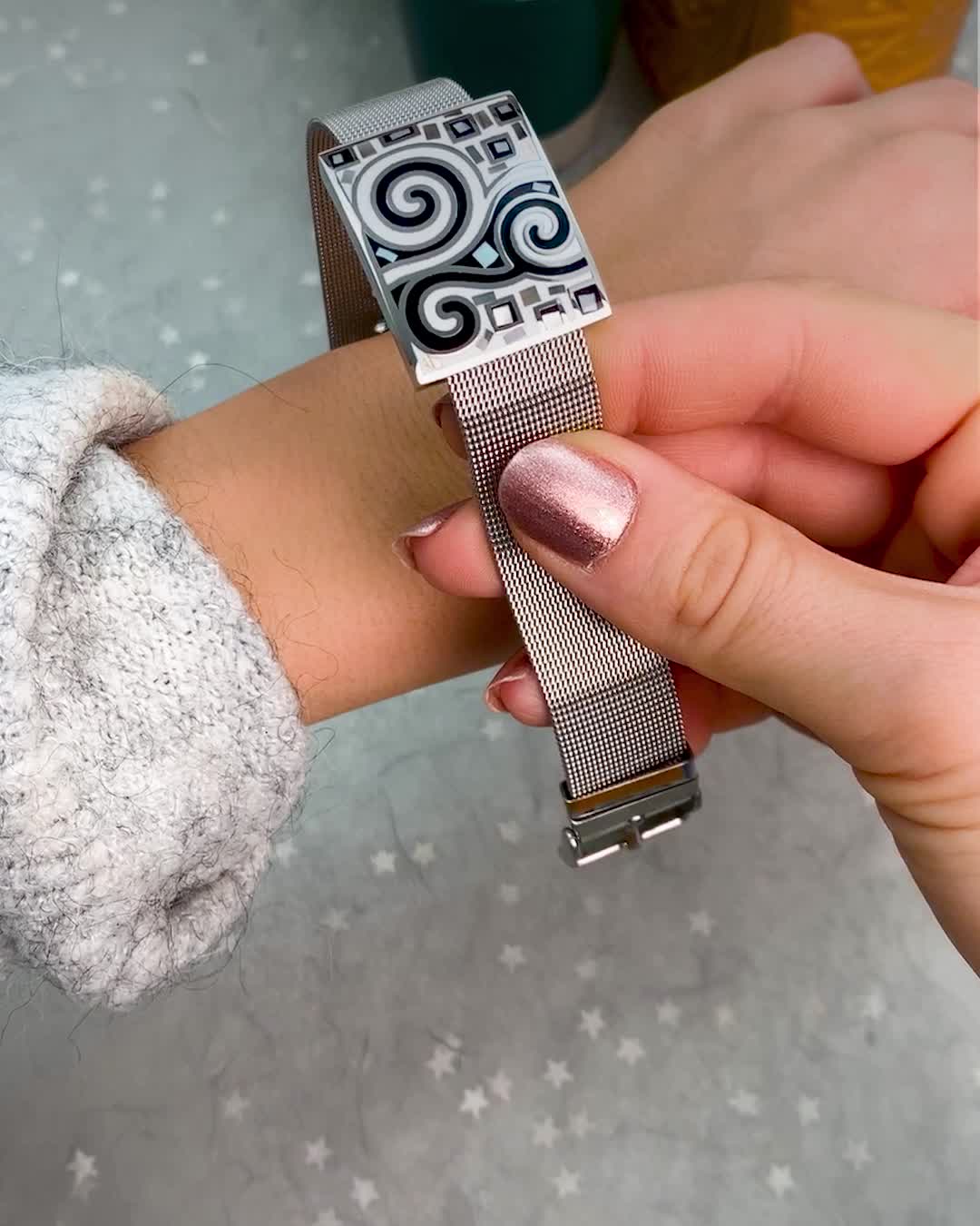Mit einer Breite von 18 mm passt sich das Armband mit seinem Uhrenverschluss-System jedem Handgelenk leicht an.
