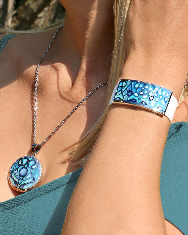 Entdecken Sie die perfekte Mischung aus Emaille und Perlmutt. Eine Kollektion aus einzigartigen Schmuckstücken, deren Zusammensetzung sich an der Schönheit Italiens inspiriert hat.