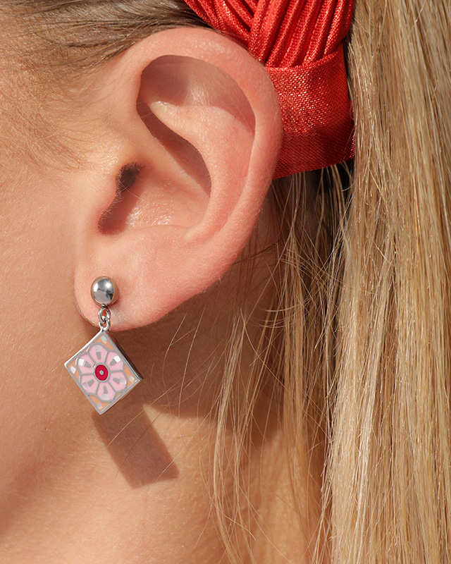 Aus emailliertem Stahl mit Perlmutt besetzt, sind sie diamantförmig und verleihen Ihnen ein elegantes Aussehen. Ihre Pastellfarben spiegeln die Ruhe dieser Region wider.