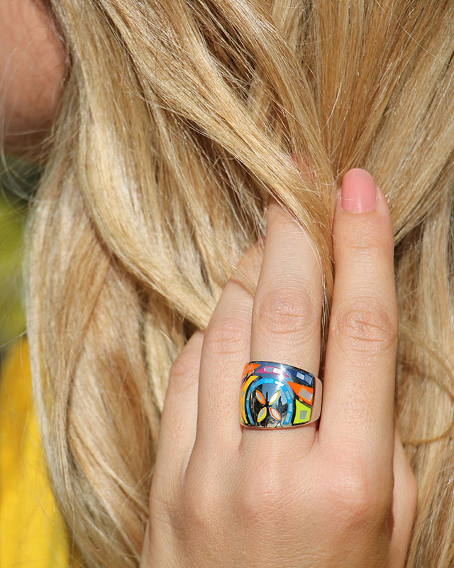 Aus emailliertem Stahl mit Perlmutt bilden die hellen Farben das perfekte Accessoire, um Ihrem Look ein wenig Würze einzuhauchen! Sie können diesen Ring mit unserem Armband Macciadosa kombinieren, das dieselben Motive wieder aufnimmt, wodurch die beiden ein elegantes Set bilden.