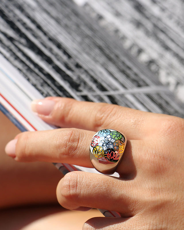 Entdecken Sie die perfekte Mischung aus Emaille und Perlmutt. Eine Kollektion aus einzigartigen Schmuckstücken, deren Zusammensetzung sich an der Schönheit Italiens inspiriert hat.