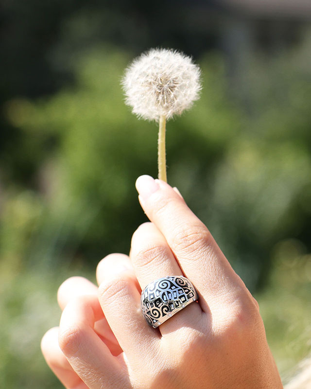 Sie können diesen Ring mit unserem Armband Vallermona kombinieren, das dieselben Motive wieder aufnimmt, wodurch die beiden ein perfekt aufeinander abgestimmtes Set bilden.