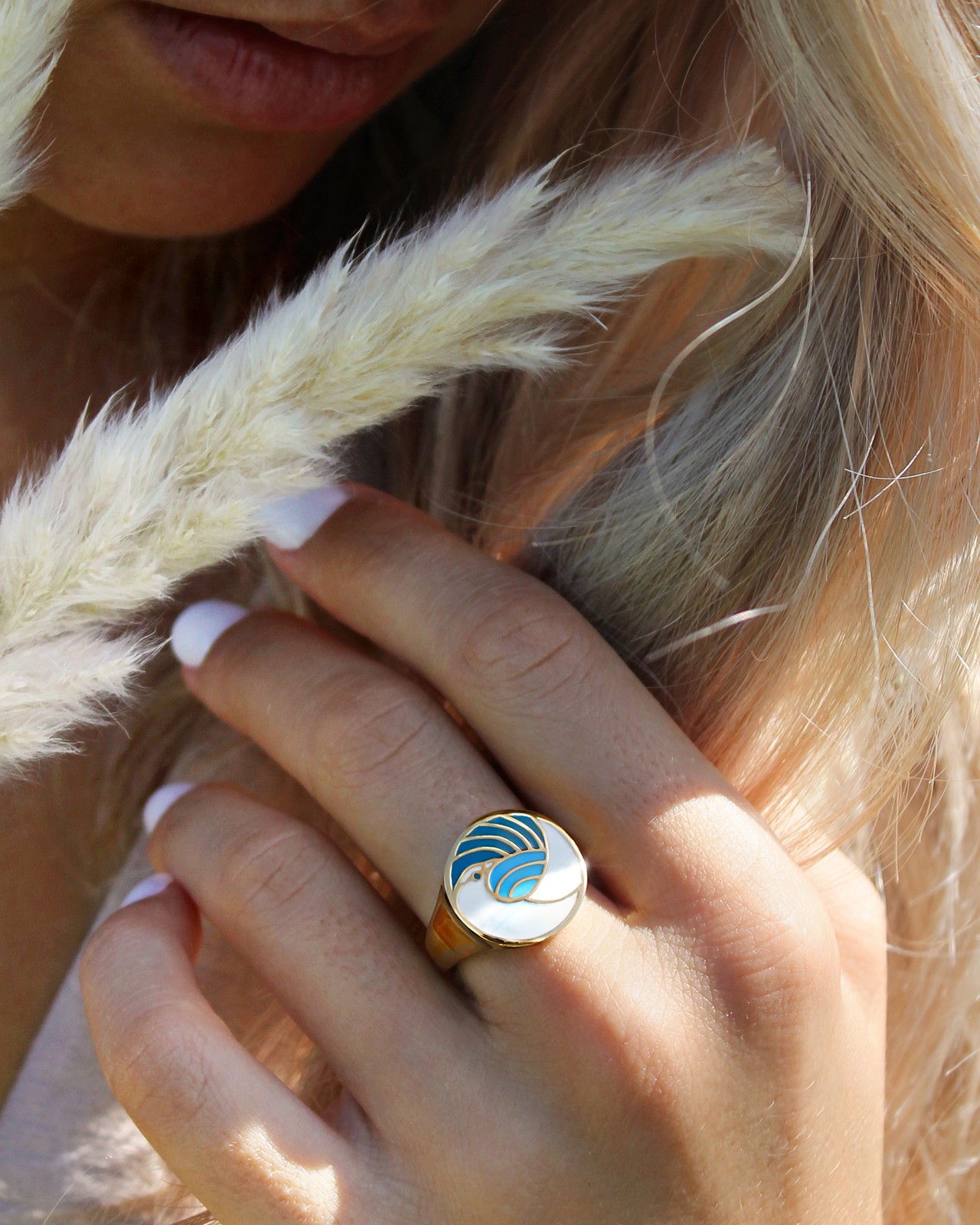 Seine Siegelringform betont das Motiv und bringt gleichzeitig die richtige Leichtigkeit in Ihr Outfit.