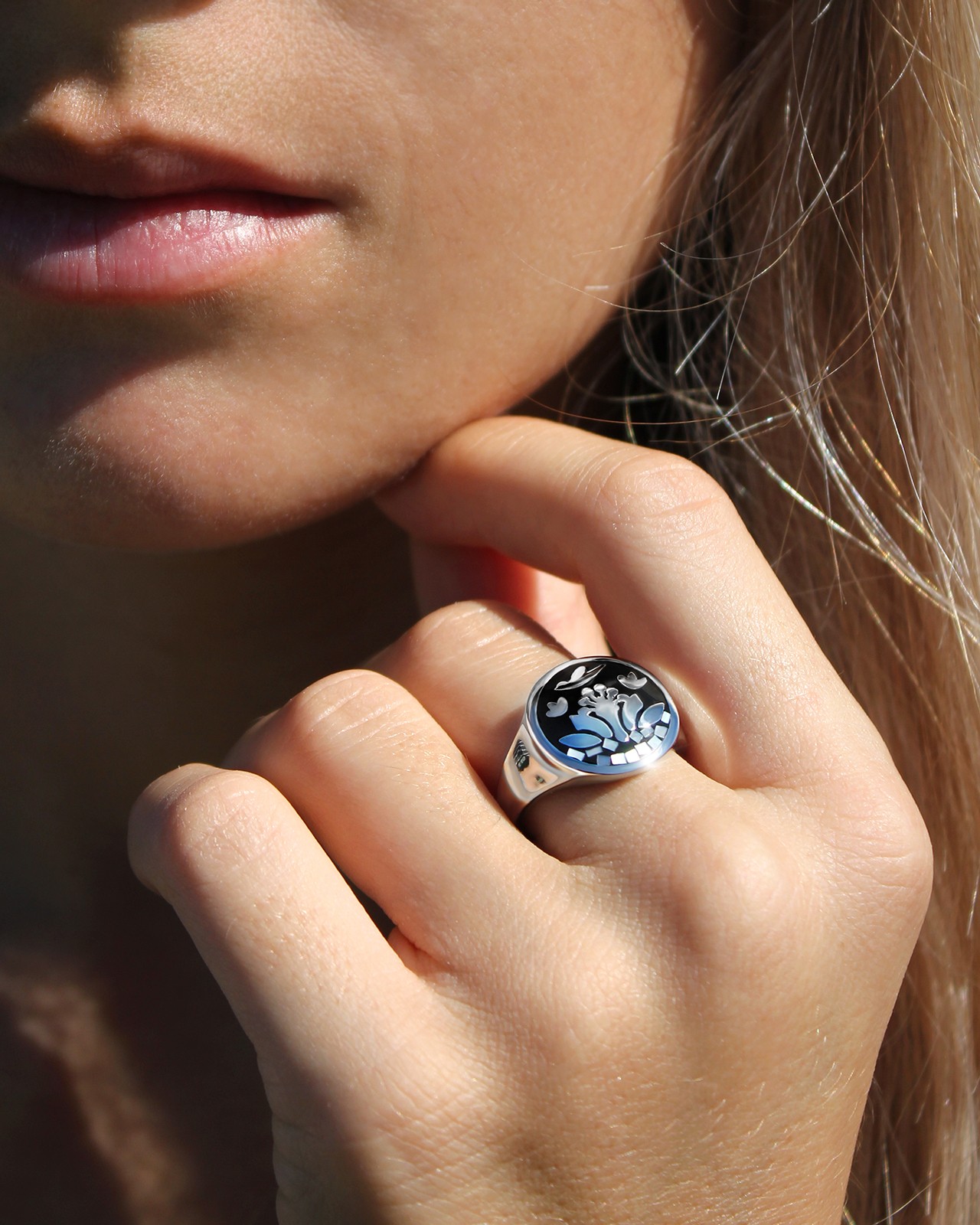 Seine Siegelringform passt sich perfekt an Ihre Hand an und sorgt für ein atemberaubendes Ergebnis.