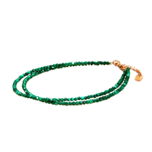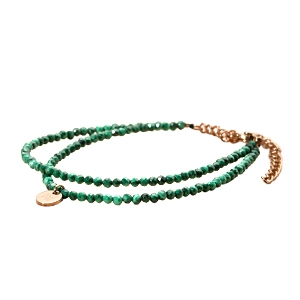 Die Halskette Venola hebt ein zartes Choker-Design hervor, das aus feinen facettierten Malachit-Perlen von 2 mm besteht.