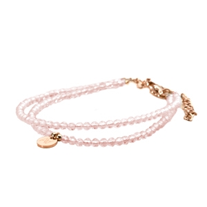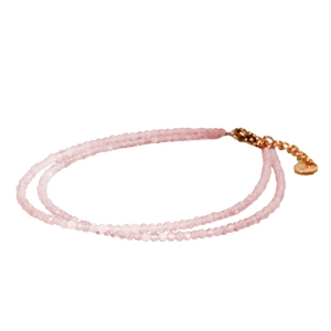 Die Halskette Commia hebt ein zartes Choker-Design hervor, das aus feinen facettierten Rosenquarz-Perlen von 2 mm besteht.