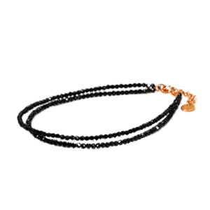 Die Halskette Leona hebt ein zartes Choker-Design hervor, das aus feinen facettierten Schwarzer-Turmalin-Perlen von 2 mm besteht.