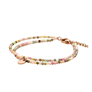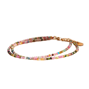 Die Halskette Monza hebt ein zartes Choker-Design hervor, das aus feinen facettierten Multicolor-Turmalin-Perlen von 2 mm besteht.