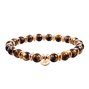 Das Armband Messinetta ist aus roségoldenem Edelstahl und mit einem faszinierend facettierten Tigerauge verziert.