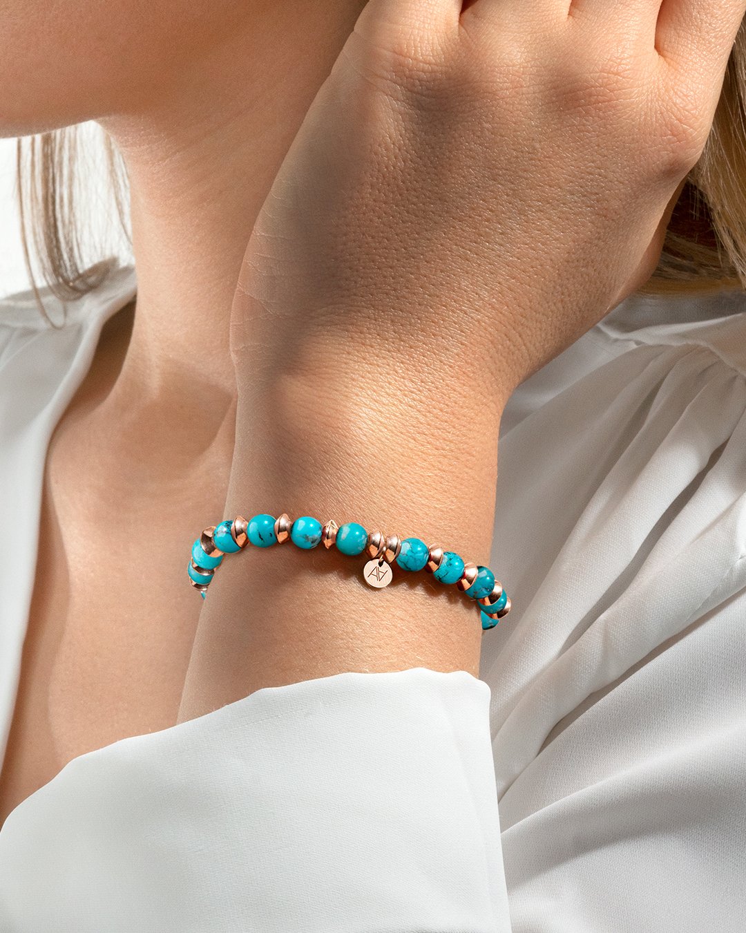 - Material des Armbandes Rosefarbener Edelstahl und Türkisen