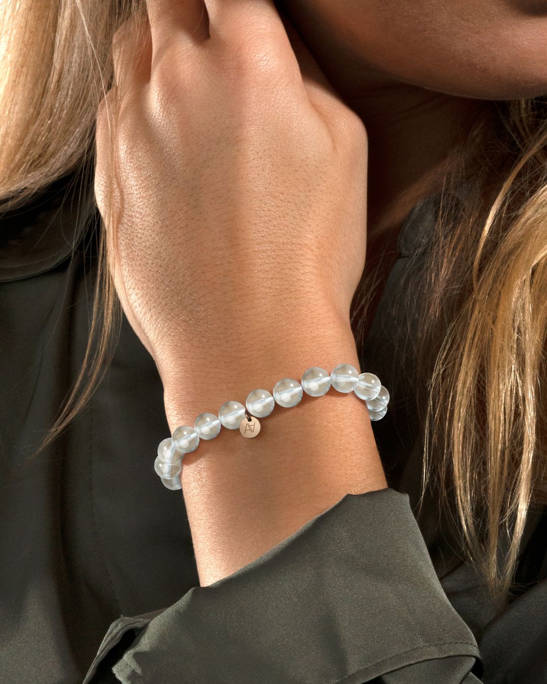 - Material des Armbandes Roséfarbener Edelstahl und bergkristall