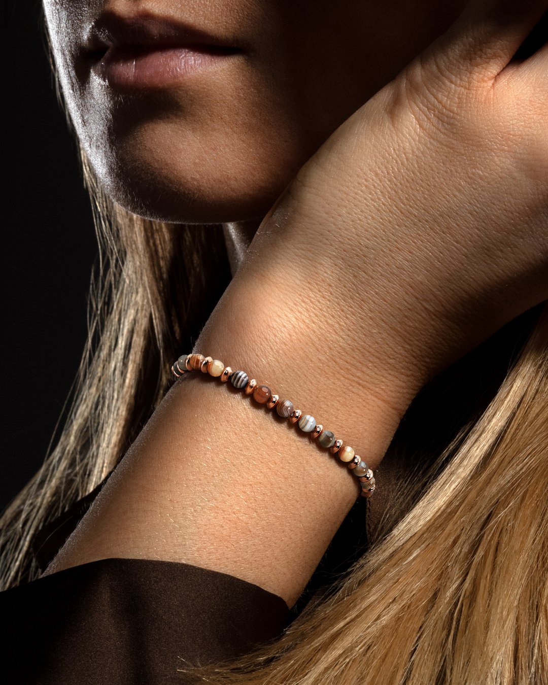 - Material des Armbands Rosévergoldeter Edelstahl und Botswana Achatstein