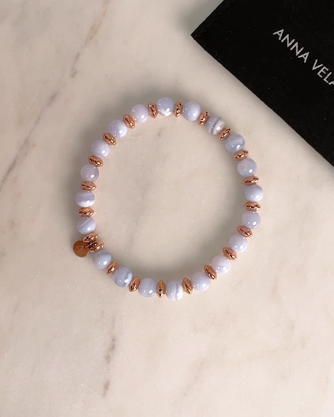 - Material des Armbands Roséfarbener Edelstahl und Chalcedon