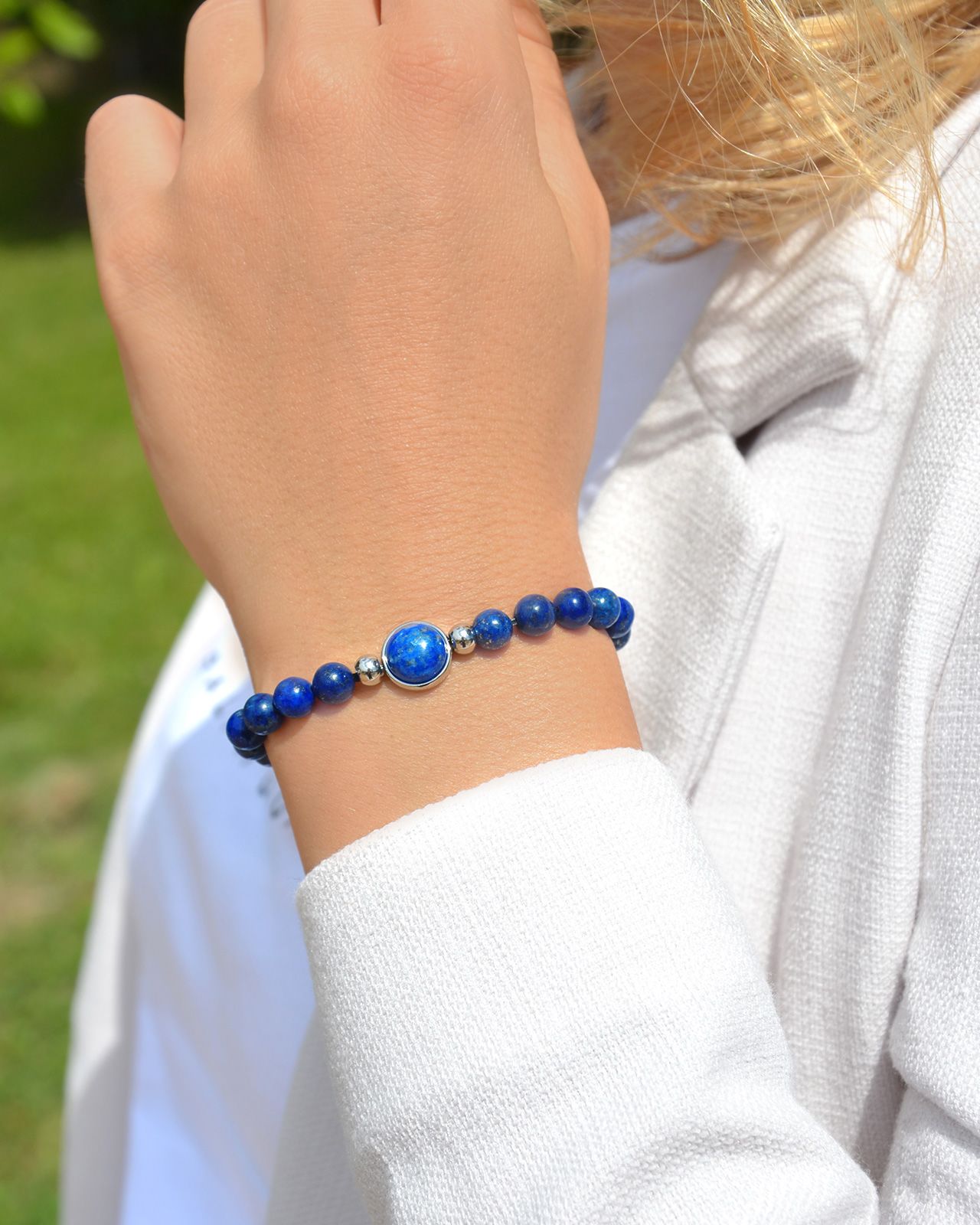 Der Lapislazuli steht für das Vetrauen und die Kreativität. Der Träger gewinnt an Selbstvertrauen, spricht leichter über seine Gefühle und Empfindungen und entwickelt mehr Weisheit. Dieser Naturstein hilft seinem Träger den inneren Frieden zu finden, damit der Stress sich so schnell löst.