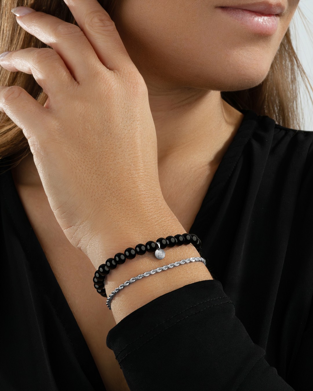 Das Herzstück ist ein Plättchen mit dem Schriftzug von Anna Velazia aus Edelstahl. Das Armband besticht durch seine klare Ästhetik, die die Reinheit und Einzigartigkeit jedes einzelnen Steins hervorhebt. In der Steinheilkunde hat Onyx die Tugend, Mut in stressigen Situationen zu verleihen. Unsere Schmuckstücke bestehen aus Natursteinen, daher sind sie alle unterschiedlich. Daher können je nach Modell Unterschiede in Größe und Farbnuancen auftreten. Diese Unterschiede machen jeden Stein einzigartig. Die Anzahl der Steine kann von einem Armband zum anderen variieren.