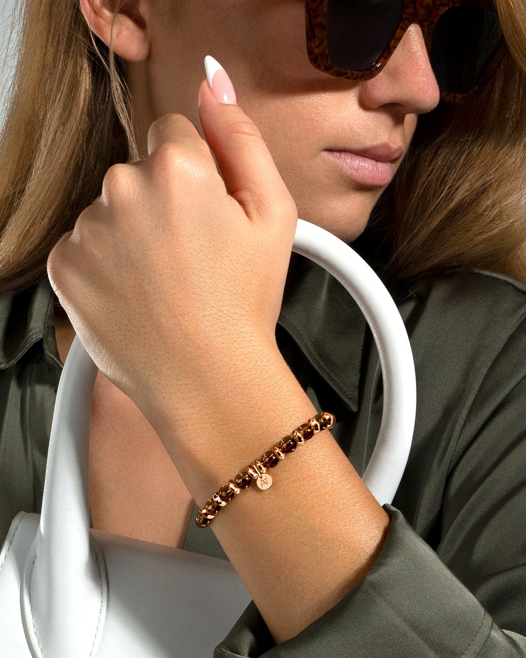 - Material des Armbandes Rosévergoldeter Edelstahl und Rauchquarz