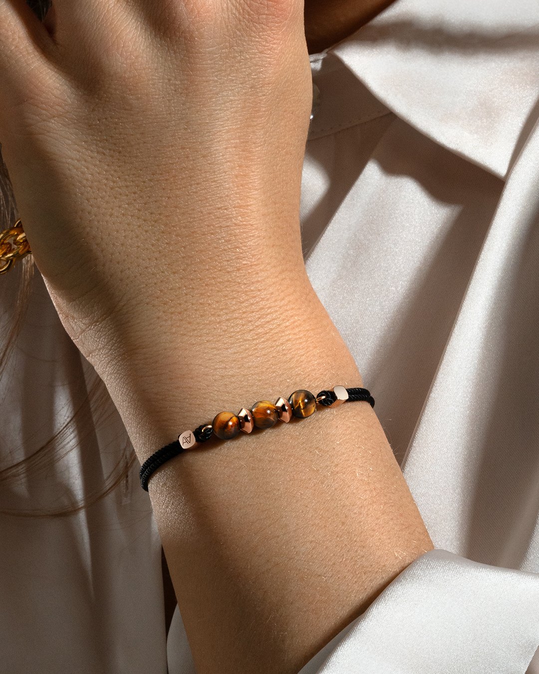- Material des Armbands Baumwolle + Rosévergoldeter Edelstahl