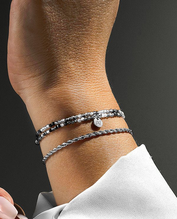 Das Riminillo-Armband besteht aus einer doppelten Kette aus silberfarbenem Edelstahl.