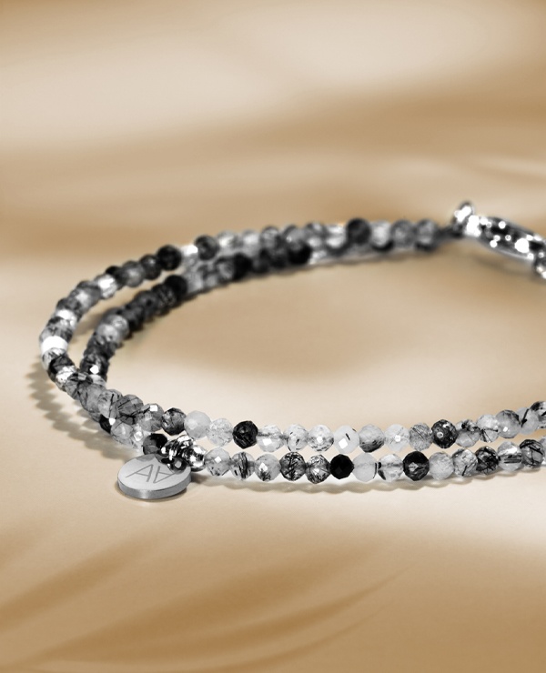 - Material des Armbands Edelstahl und Turmalinquarz